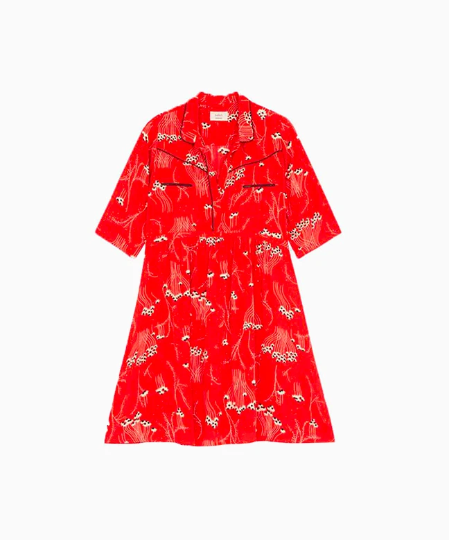 Robe Ba&sh modèle Kyle. Robe courte et florale à manches 3/4 avec plis à la taille pour une silhouette flatteuse. Colorée et fleurie elle est idéale pour la saison ! Elle est disponible à la location unitaire ou par abonnement.