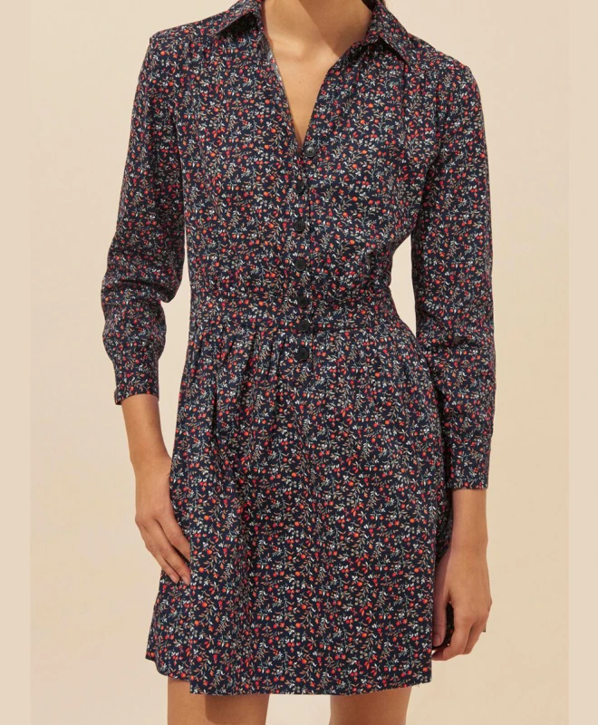 Robe BA&SH modĂšle Sarah Noir. Cette petite robe de la collection Bash est en imprimĂ© fleuri noir. Elle est dotĂ©e d’une taille marquĂ©e, soulignĂ©e de fronces, pour donner un joli volume Ă la jupe.