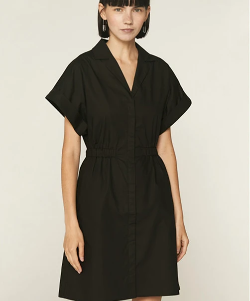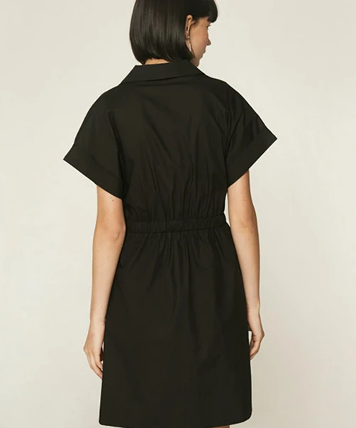 Robe Compania Fantastica, modèle Poplin Black. Cette robe chemise dispose de manches courtes et d’une boutonnière dissimulée. Une large ceinture élastique vient marquer la taille. Cette petite robe est un classique de votre garde-robe. Idéale pour les journées chaudes d’été, vous pouvez la porter avec une paire de sandales plates pour un look plus élégant, ou bien avec une paire de baskets pour un look plus décontracté. Cette robe Compania Fantastica est disponible à la location par abonnement Une Robe Un soir et à la location à l’unité.
