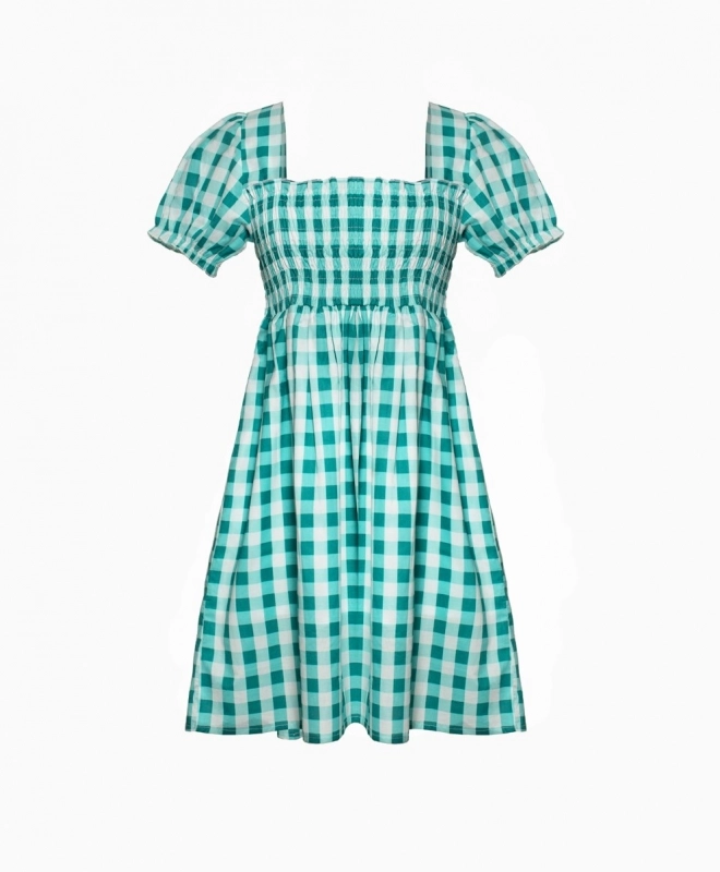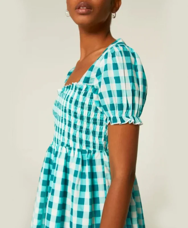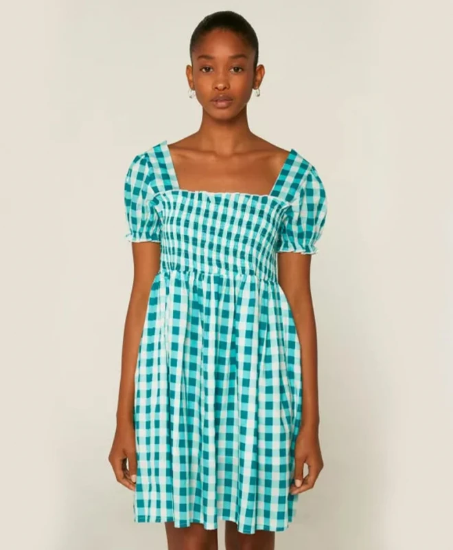 Robe Compania Fantastica, modèle Gingham Blue. Cette robe courte d’été dispose de manches courtes bouffantes et resserrées. Elle est dotée d’un col carré sur le devant et le derrière de la robe. Des détails froncés et plissés viennent souligner la poitrine. La jupe de la robe est droite et fluide. Idéale pour la saison estivale, cette robe sera parfaite pour un dîner en bord de mer ou pour une petite balade nocturne lors de vos vacances loin du quotidien. Cette robe Compania Fantastica est disponible à la location par abonnement Une Robe Un soir et à la location à l’unité.