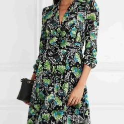 Robe DIANE VON FURSTENBERG modèle Hawaii. Cette petite robe courte rouge rosé est confectionnée par la créatrice de mode belgo-américaine. Coupée dans imprimé en soie, cette robe amusante et féminine présente une coupe portefeuille classique avec une ceinture fine, des manches courtes, un col en V et une couture flatteuse.