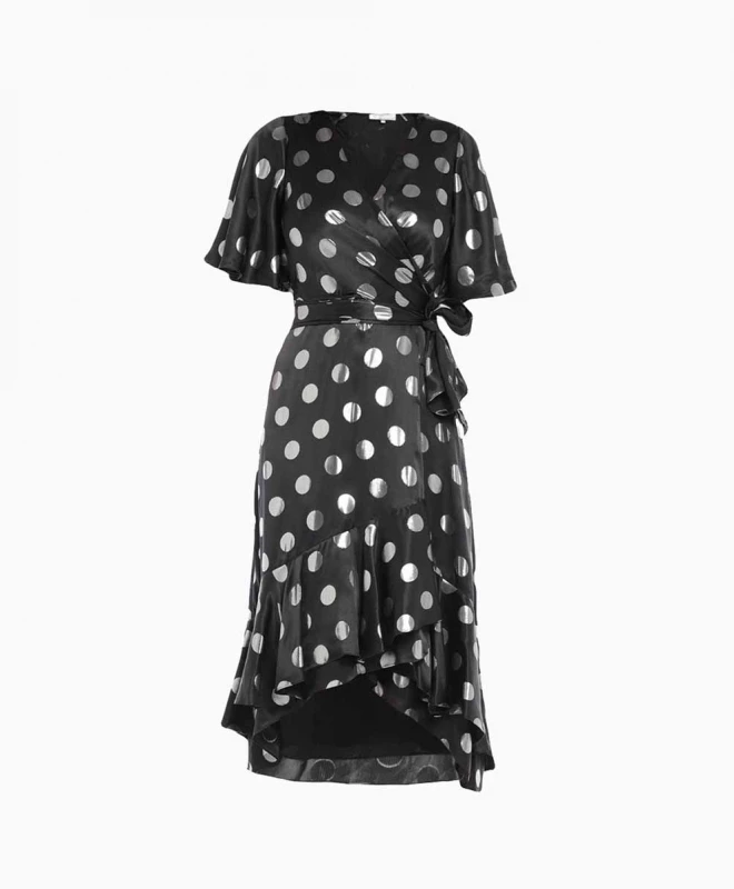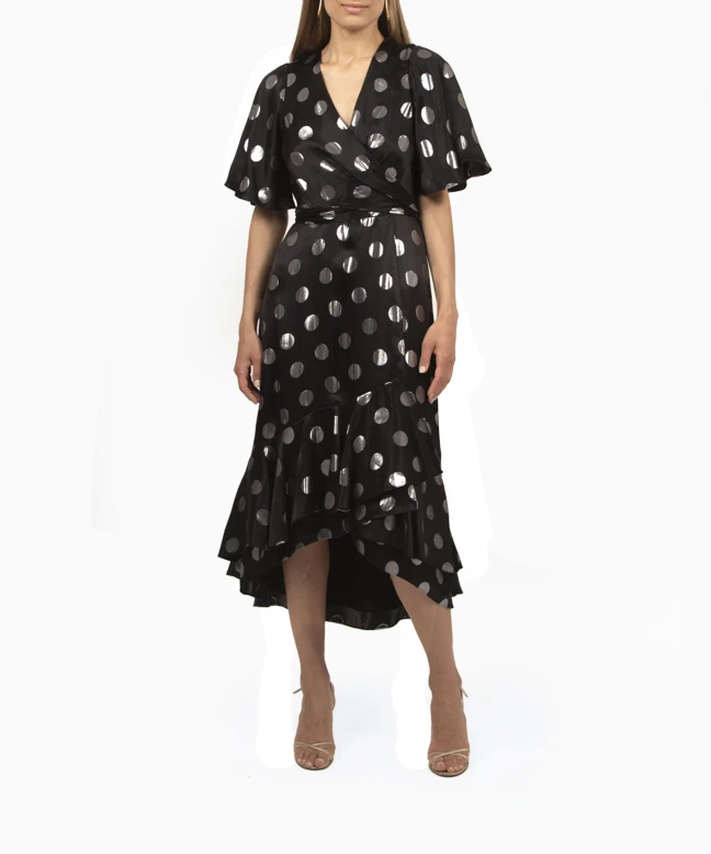 Robe DIANE VON FĂĽrstenberg modèle Sareth Dot. Sareth a Ă©tĂ© signĂ©e par la styliste amĂ©ricaine Diane Von FĂĽrstenberg. Cette robe portefeuille iconique de la marque est dotĂ©e d’un petit volant et d’un imprimĂ© Ă pois. TaillĂ© dans un jacquard de soie mĂ©tallisĂ© en noir et argent, Sareth est dotĂ©e d’une brillance et d’un mouvement parfaits. Cette pièce de luxe est Ă louer pour un cocktail, un Ă©vĂ©nement professionnel ou un mariage. Choisissez de la porter avec le sac Saint Laurent Shimmery.