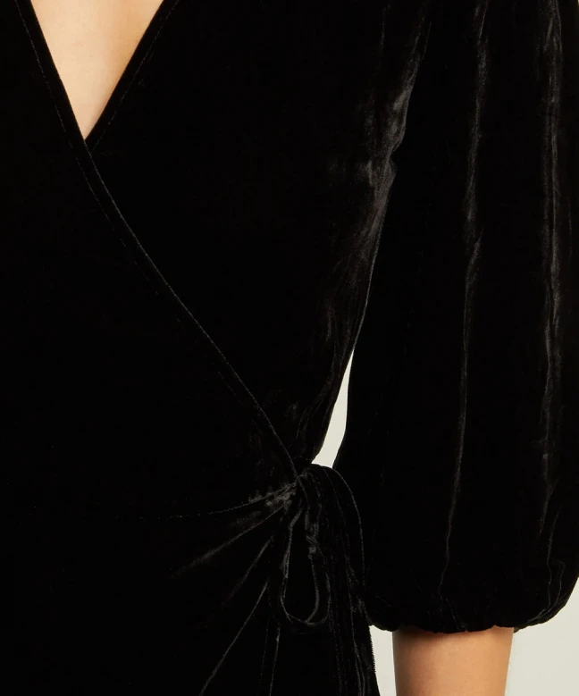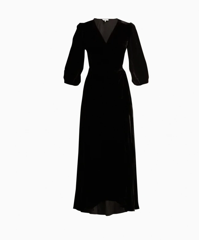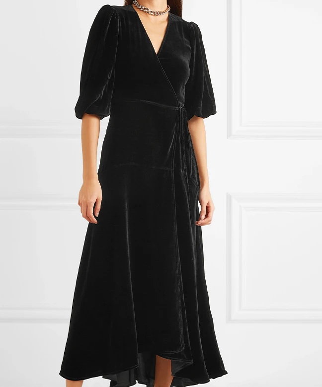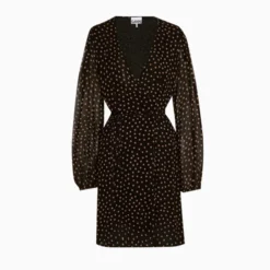 Robe GANNI, modèle Aldine. Cette robe au format porte-feuille a des manches 3/4, ce style de robe permet d’avoir un décolleté en V qui dégage le cou et laisse la possibilité de l’accessoiriser avec un joli collier. La matière de la robe permet un tombé fluide et flatteur. Cette robe peut se porter de jour comme de nuit, à accessoiriser en fonction, un sac de ville pour un look journalier et une petite pochette coloré pour une sortie de nuit. Osez, sans risque que vous lasser grâce à la location de vêtements.