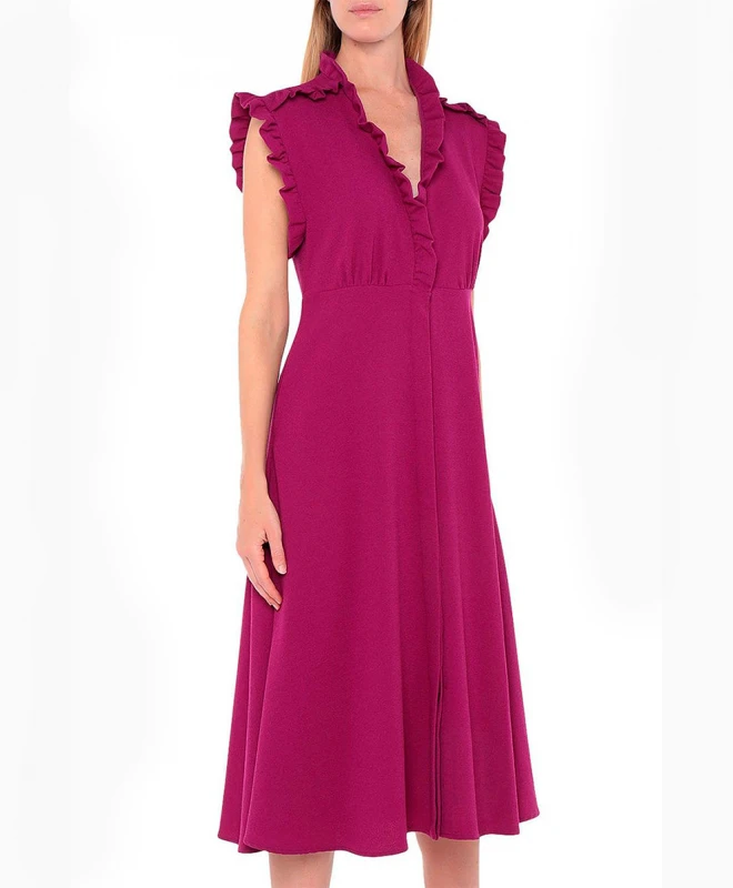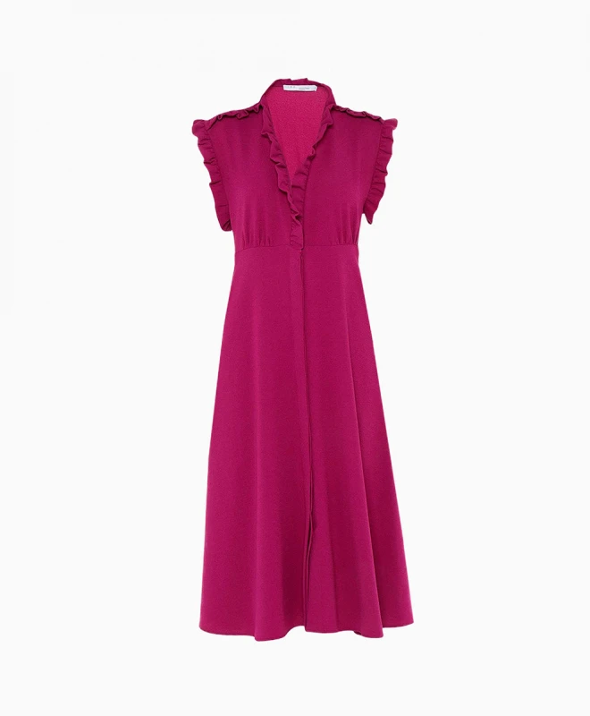 Robe IRO modèle Purple. La robe de la célèbre marque IRO dispose d’un col en V avec des encolures autour. La robe se distingue de part sa couleur violette qui vous permettra d’être au cœur des tendances. La robe IRO est dotée de manches courtes à fronces. La robe est disponible à la location pour tous vos événements, elle peut se porter de jour comme de nuit.