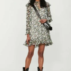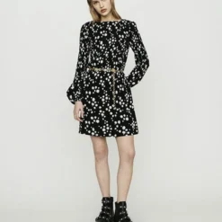Robe Maje, modèle Runny. Cette robe courte de couleur argent, réalisé avec des fils métallique est composée d’un drapé à la taille, d’une encolure ronde, de manches longues, elle a un bouton et un zip invisible sur le côté. Elle est très ajustée pour mettre votre corps en valeurs lors de tout vos événements, on ne verra que vous! Osez louer cette robe pour être la plus belle pour chaque occasion.
