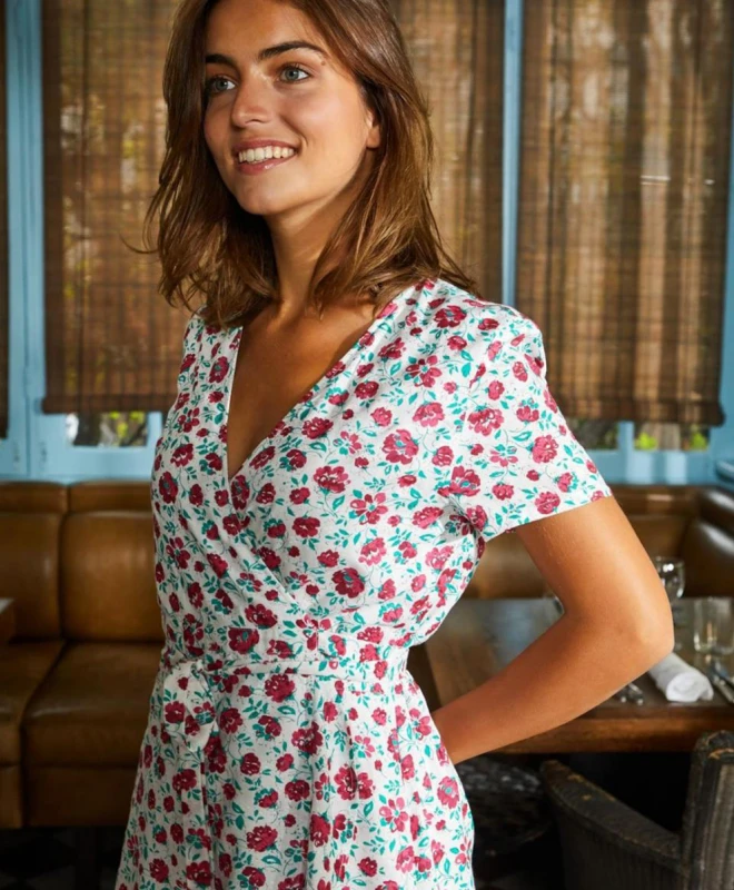 Robe Petite Mendigote, modèle Agnès. Cette robe courte possède des manches courtes stylisées par un plissé au niveau des épaules. Dotée d’un col V et cintrée à la taille, cette robe viendra mettre votre silhouette en valeur ! Elle possède une ceinture intégrée et est porte-feuille. La jupe de la robe est fluide et patineuse donnant ainsi du volume. Vêtement essentiel à avoir dans son dressing, cette robe sera parfaite pour la saison estivale et toutes les soties qu’elle promet ! Associez-la à une paire de sandales ou de baskets pour un look casual ! Cette robe est taille petite; Cette robe Petite Mendigote est disponible à la location par abonnement Une Robe Un soir et à la location à l’unité.
