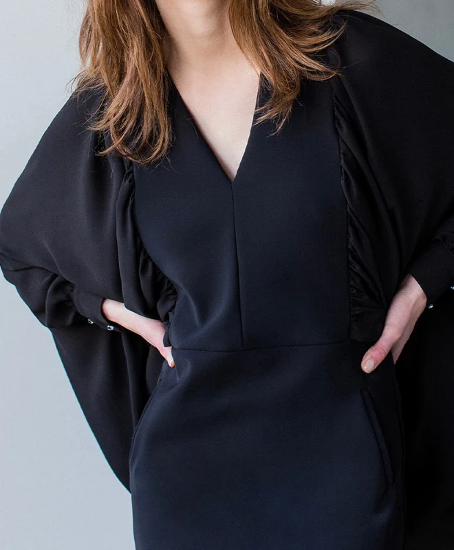 Robe Indies, modèle Brunello. Cette jolie robe noire courte en jersey est dotée d’une belle encolure ronde fendue sur le devant. Elle possède des manches chauves souris froncées et boutonnées en mousseline. Son corsage froncé des deux côtés et son ouverture dans le dos sublimeront et affineront votre silhouette. Grâce à sa découpe cette pièce marquera votre taille. Cette robe taille normalement. Nous vous conseillons de sélectionner votre taille habituelle. Vous pouvez louer cette robe Indies grâce à la box de vêtements Une Robe Un Soir ou à la location 4 jours.