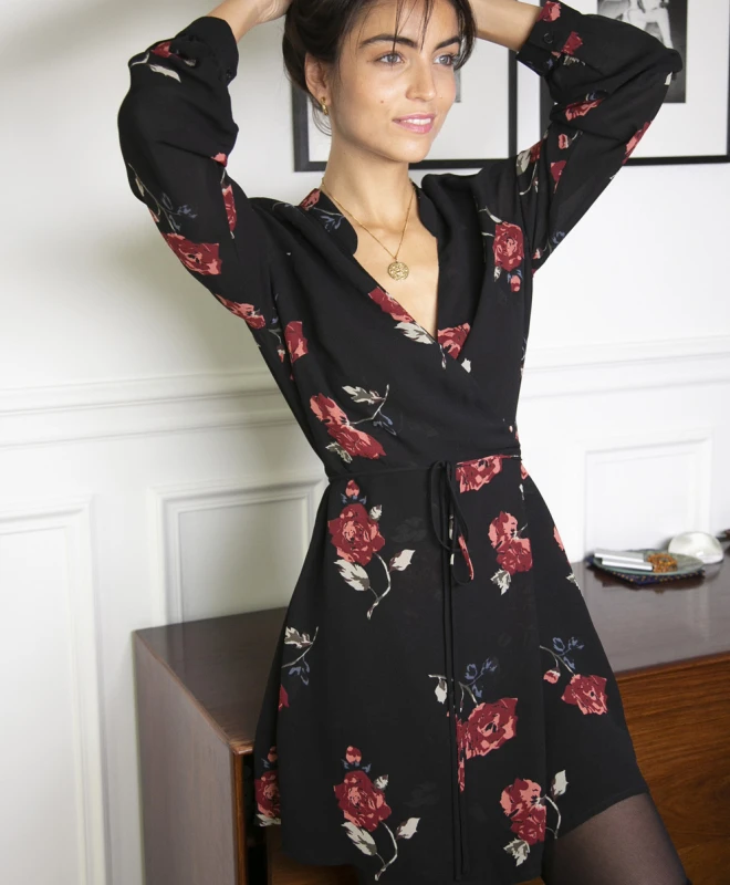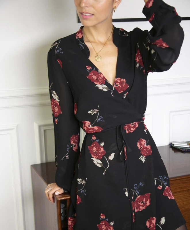 Cette robe Dickinson de Reformation est une robe portefeuille à l’imprimé floral rouge sur fonds noir. Son décolleté V allié à sa coupe portefeuille en font une robe facile à louer pour le bureau ou pour sortir et sa matière versatile permet de la porter en toute saison. Reformation est une marque américaine qui a décidé de ne produire que des modèles éco-friendly. Furieusement tendance, Reformation n’est pas encore distribuée en France et la location de vêtements permet de l’intégrer à votre garde robe.