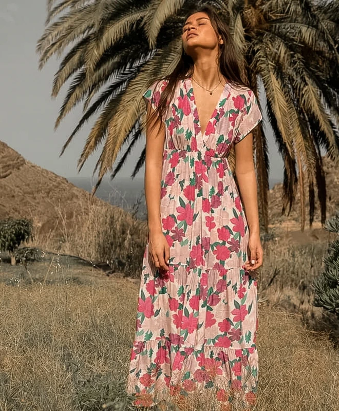 Robe Marie Sixtine, modèle Enola Giverny. Cette jolie robe à imprimé floral dispose d’un col V et de manches courtes. Avec une taille élastique et une ouverture dans le dos, la robe Enola Giverny sera parfaite pour les piques niques du dimanche après-midi du mois de juin. Associez-la à une simple paire de baskets blanches et plates pour un look décontracté. Cette robe Marie Sixtine est disponible à la location par abonnement Une Robe Un Soir et à la location unitaire.