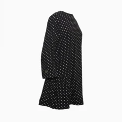 Robe PNL modèle Helsa. Cette petite robe noire à motifs fleuris blanc dispose de volants au niveau des manches, ainsi que des poignées resserrés. La robe peut se porter avec une ceinture afin de marquer la taille. La robe est disponible à la location par abonnement Une Robe Un Soir.