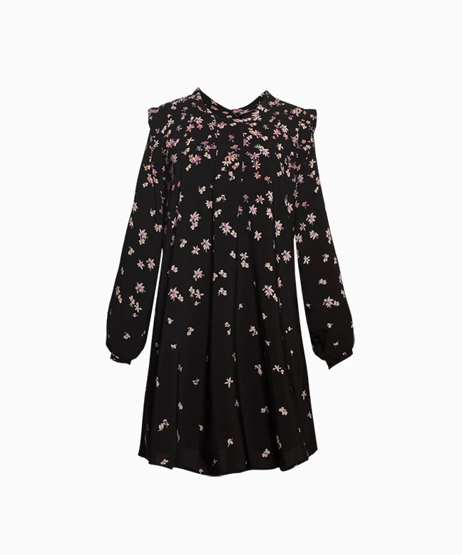 Robe Idano Doly. Cette robe fleurie est dotĂ©e de manches longues, d’un col rond et d’un bas Ă©vasĂ© pour une silhouette toute en lĂ©gèretĂ©.