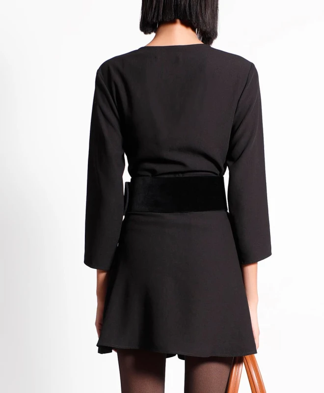 Robe Barbe & Cie, modèle Lilou. La robe Lilou est confectionnĂ©e dans un crĂŞpe satin noir. Sa coupe est simple, pensĂ©e sans fermeture, ni zip ou bouton, une robe qui s’enfile aussi facilement qu’un tee-shirt le matin ! Elle comporte une ceinture intĂ©grĂ©e avec un cordon indĂ©pendant, des surpiqĂ»res au niveau de l’encolure, du milieu, sur la partie avant et de la ceinture, ainsi que des poches invisibles. Cette robe est disponible Ă l’abonnement et Ă la location Ă l’unitĂ© Une Robe Un Soir !