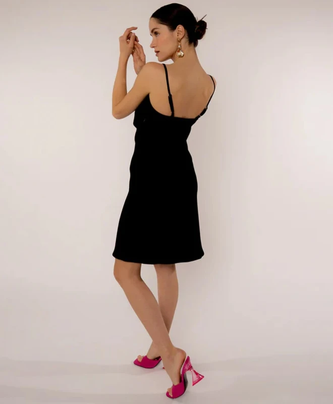 Robe IKA Paris, modèle Sofia Dark Black. Cette belle robe est dotĂ©e d’une coupe droite et d’un col bĂ©nitier. La jupe de la robe est dotĂ©e de lĂ©gers volants. Elle possède des bretelles fines rĂ©glables. Elle est confectionnĂ©e Ă la main Ă partir de jersey noir upcyclĂ©e. Cette robe taille normalement. Vous pouvez louer cette robe IKA Paris Ă la box de vĂŞtement Une Robe Un Soir disponible Ă la location 4 jours.