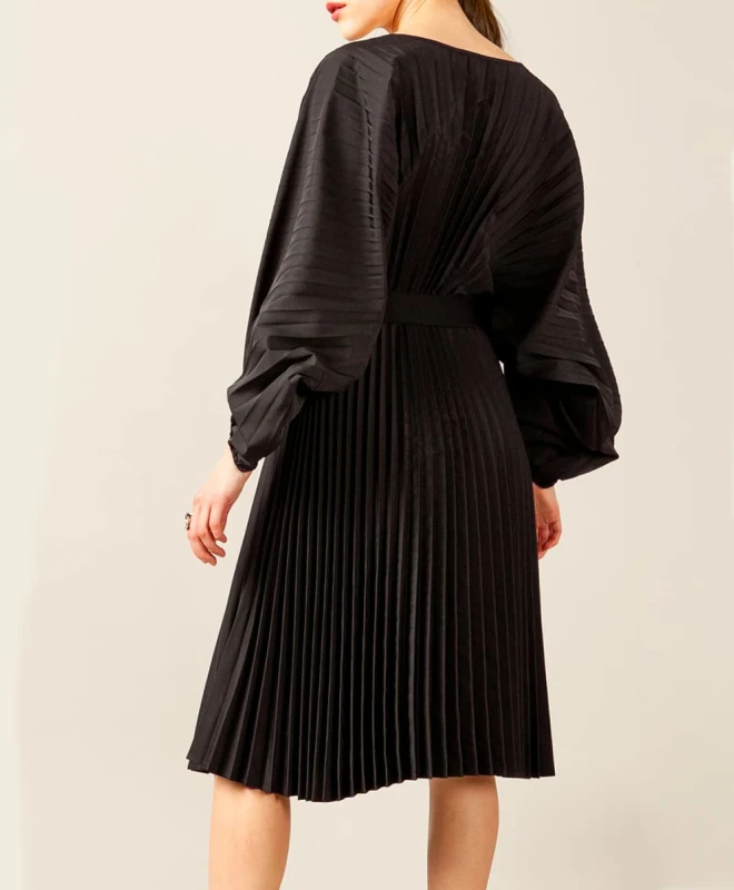 Robe Indies, modèle Sophea Noire. Cette jolie robe noire mi-longue en jersey possède une coupe cintrée à la taille par un élastique. De quoi vous marquer la taille et apporter une touche de féminité indéniable ! Cette robe est également dotée d’un col rond et d’un jeu de fronces sur l’ensemble de la pièce. Ses manches longues resserrées par un élastique aux poignets accentueront votre élégance ! Cette robe taille grand. Nous vous suggérons de prendre une taille en dessous de votre taille habituelle. Vous pouvez louer cette robe Indies grâce à la box de vêtements Une Robe Un Soir ou à la location 4 jours.