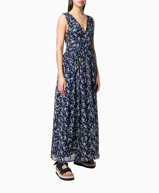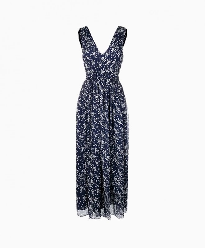 Robe PAROSH modèle Starlight de couleur bleue. Cette robe imprimĂ©e Starlight en soie P.A.R.O.S.H. est dotĂ©e d’un col en V, un design sans manches et une coupe longue. Cette robe longue de soirĂ©e sera parfaite pour diffĂ©rents Ă©vĂ©nements. Comme notre mannequin, choisissez de la porter avec les boucles d’oreilles Charlotte Chesnais