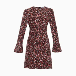 Robe Rouje, modèle gabinette prairie Noir. Cette robe noire à motif fleuri est la cadette de la célèbre gabin, elle dévoilent légèrement plus les jambes pour plus de sensualité et de féminité. Elle possède une coupe portefeuille resserré à la taille, une fermeture par cinq boutons et un lien sur le devant et des manches courtes. Elle galbe la jambe, affine la taille et sublime le décolleté. Cette robe peut être portée en toutes saisons, en hiver avec des bottes hautes et un beau manteau en laine ou au printemps avec des derbys et une veste. Cette robe est disponible à la location avec l’abonnement Une Robe Un Soir.