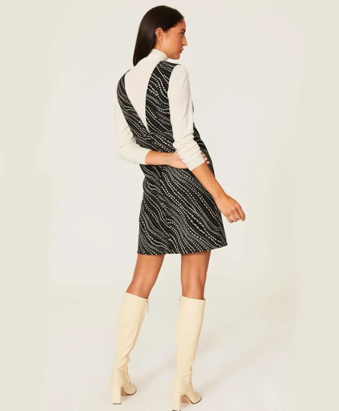 Robe Samsoe Samsoe, modèle Lina Black Flower. La robe Lina dispose d’une coupe droite, sans manches. Ce modèle est confectionné dans un tissu à imprimé animalier (zébré) noir et blanc. Cette robe dispose d’une encolure en V profond. Nous vous recommandons de la porter au-dessus d’une chemise ou d’un pull pour l’hiver. Disponible en location à l’unité ou avec l’abonnement Une Robe Un Soir.