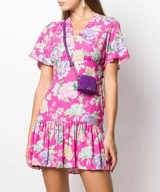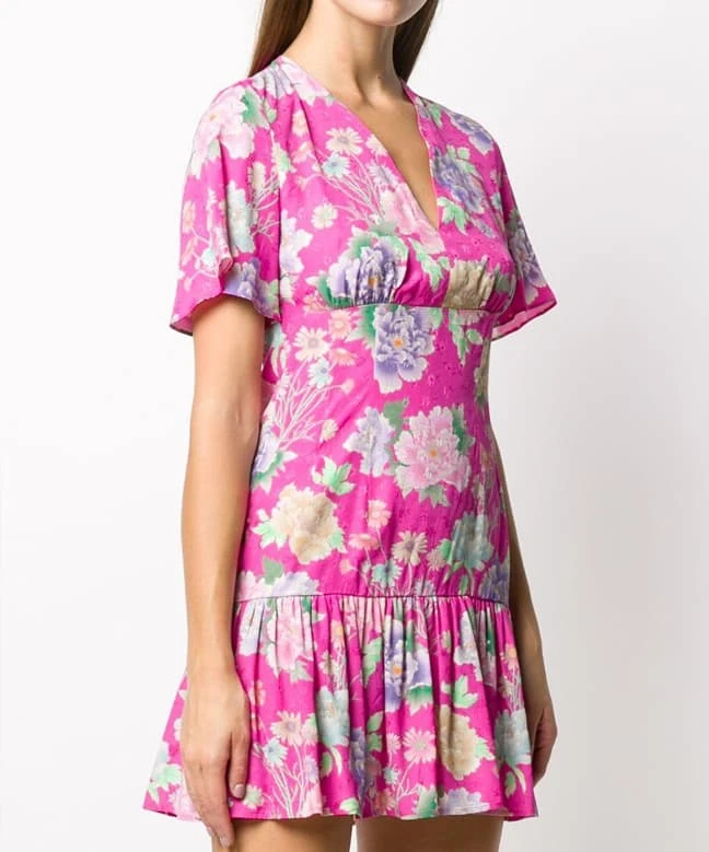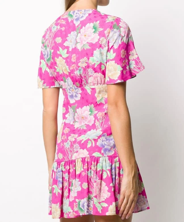 Robe Sandro, modèle Leonn. Cette robe courte est dotée de manches courtes fluides et évasées. Un col V vient dévoiler le haut de votre buste. Des détails plissés soulignent la poitrine. De coupe droite, cette robe viendra mettre votre silhouette en valeur. La jupe de la robe est plissée et évasée vers le bas. Avec un joli imprimé fleuri, cette robe viendra compléter votre dressing pour la saison estivale ! Associez-la à une paire de sandales à talons pour un look chic décontracté pour une soirée entre amis. Cette robe Sandro est disponible à la location par abonnement Une Robe Un soir et à la location à l’unité.
