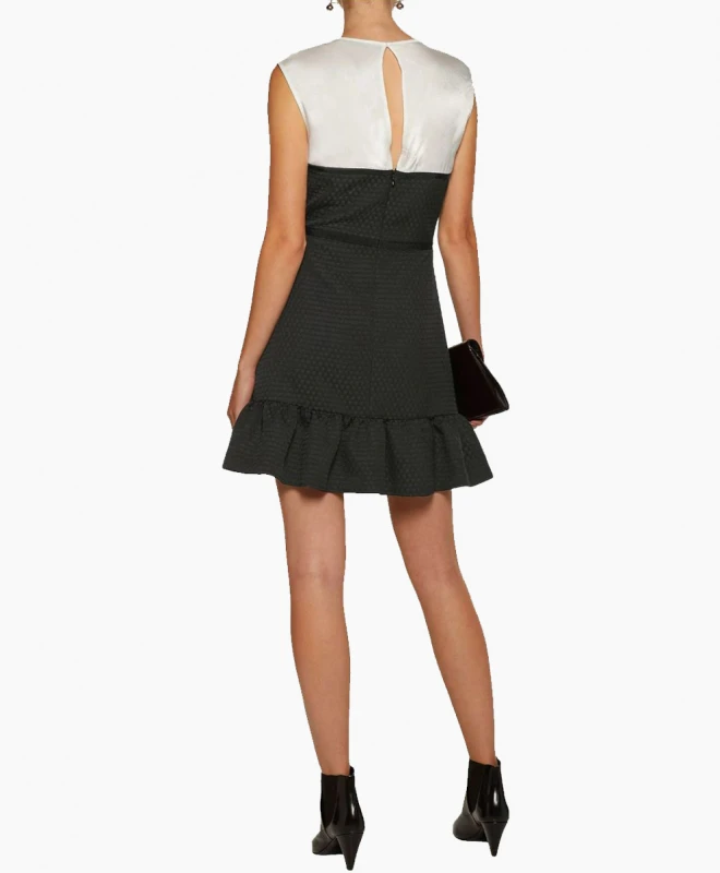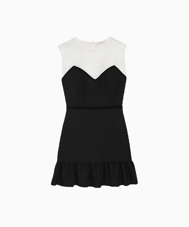 Robe Sandro, modèle Nico. Cette petite robe noire et blanche est dotée d’un haut cintré et d’un bas évasé. Parfaite pour souligner la taille et flatter la silhouette.