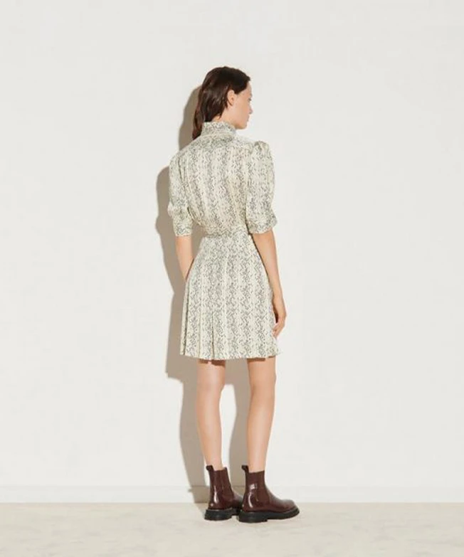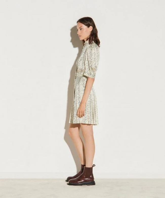 Robe Sandro, modèle Shirel. Cette jolie robe courte est confectionnĂ© dans un crĂŞpe lĂ©ger coupĂ© en une silhouette flottante avec des manches Ă©vasĂ©es, et elle est dotĂ©e d’un col fermĂ© montant. Parfaite pour les journĂ©es entre amis qui se transforment inĂ©vitablement en nuits de dans, cette robe viendra complĂ©ter votre dressing pour la saison estivale ! Associez-la Ă une paire de sandales Ă talon pour un look chic ou avec des bottines pour une tenue plus dĂ©contractĂ©e. Cette robe Sandro est disponible Ă la location par abonnement Une Robe Un Soir et Ă la location Ă l’unitĂ©.