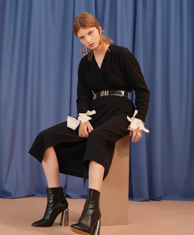 Robe Tara Jarmon, modèle Robertine. Cette robe noire Ă l’esprit minimal possède un col cache-cĹ“ur lĂ©gèrement blousant Ă la taille. Elle est dotĂ©e d’une longueur mi- mollet et d’une coupe asymĂ©trique. Cette robe a des manches longues ainsi qu’un col en V. IdĂ©ale pour le quotidien elle peut convenir pour une journĂ©e au bureau ou une soirĂ©e entre amis. Louez la via l’abonnement Une Robe Un Soir.