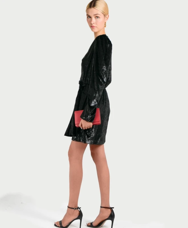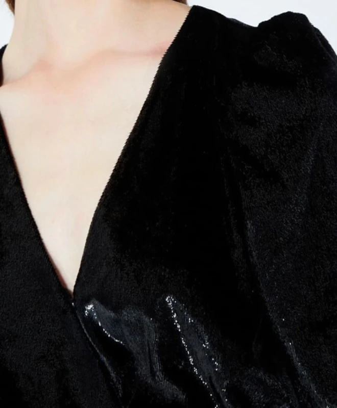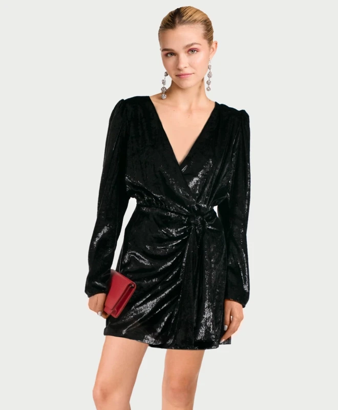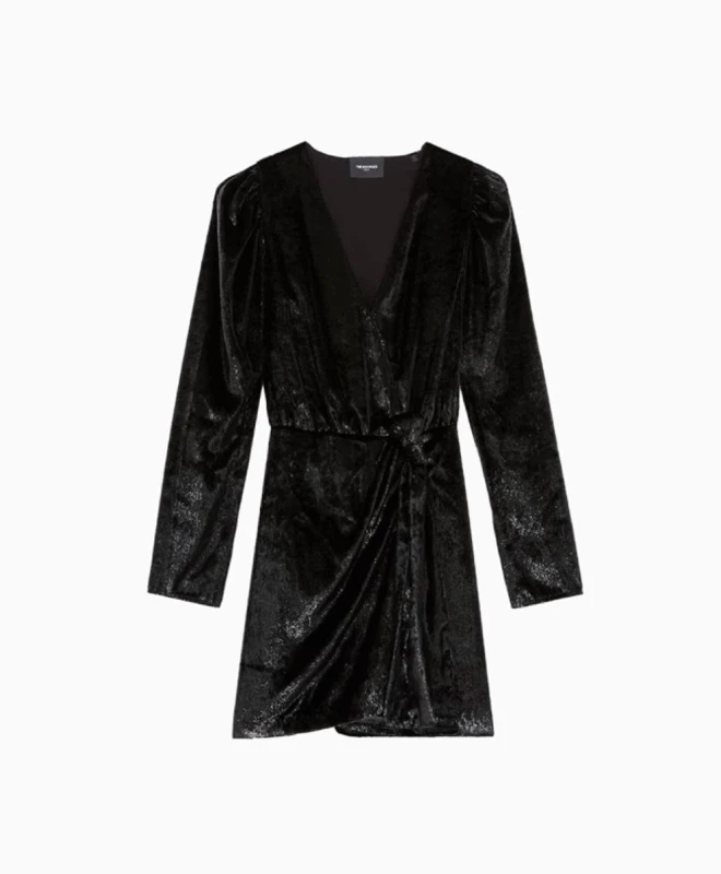 Robe The Kooples, modèle Black Velvet. Cette magnifique robe portefeuille en velours est dotĂ©e de longues manches et d’un dĂ©colletĂ© en V. CintrĂ©e Ă la taille, cette robe viendra mettre votre silhouette en valeur. Son cĂ´tĂ© soyeux et brillant ajoute une touche d’originalitĂ© Ă cette pièce. Cette belle robe The Kooples est disponible Ă la location par abonnement Une Robe Un Soir et Ă la location Ă l’unitĂ©.
