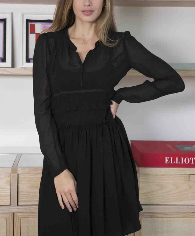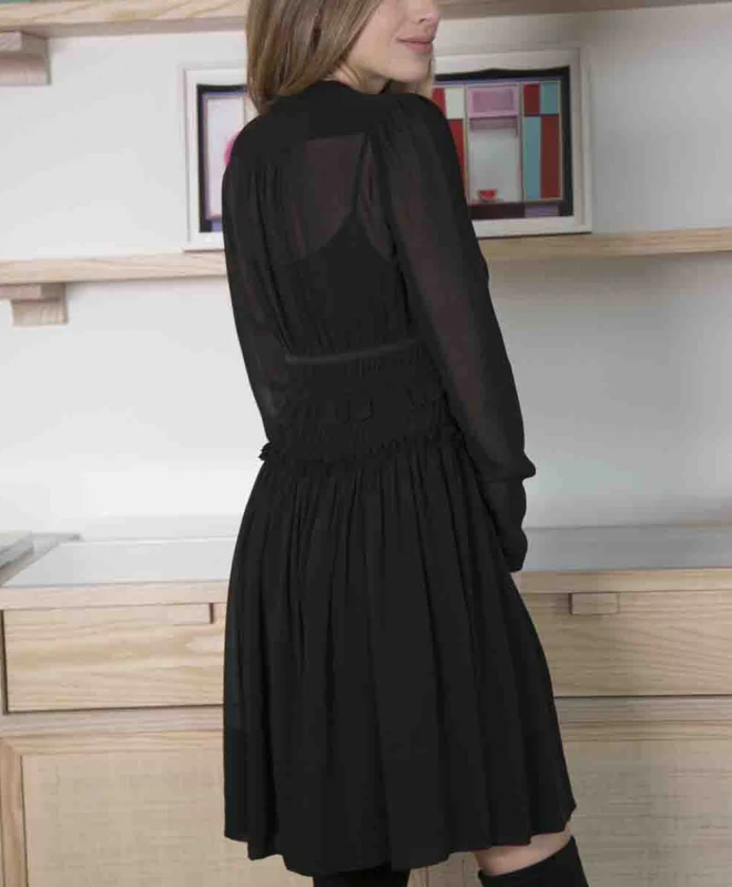 Cette robe Vanessa Bruno est un grand classique de la maison. Elle emprunte aux codes de la robe chemise avec son boutonnage gracieux et à la robe boho chic avec sa matière crêpe très vaporeuse. Associez la avec une paire de bottes et une veste velours. Cette robe est à louer pour le bureau ou pour sortir et vous garantira une silhouette très féminine.