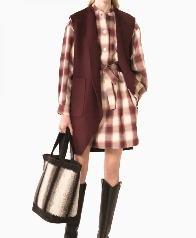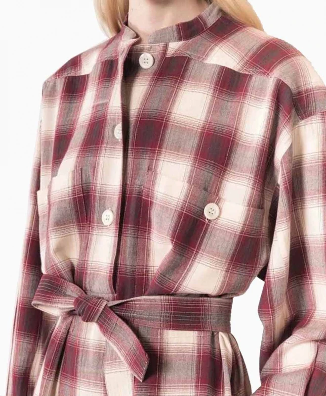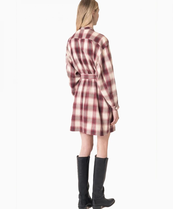 Robe Vanessa Bruno, modèle Maya Aubergine. Cette robe en coton Ă carreaux aubergine et blanc est très originale. Elle est composĂ©e de manches longues et amples pour apporter du volume, d’un col rond montant lĂ©gèrement plissĂ©, d’un bouton blanc Ă chaque bas de manche, d’une taille pouvant ĂŞtre marquĂ© avec une ceinture coordonnĂ©e ton sur ton. De plus trois boutons blancs sont prĂ©sents pour ajuster la profondeur du dĂ©colletĂ© et deux poches plaquĂ©es orne la poitrine avec chacune un bouton blanc de fermeture. Les carreaux lui donnent un petit cotĂ© rock qui pourra ĂŞtre accentuĂ© avec des bottines et un sac cloutĂ©. Osez les carreaux grâce Ă la location de vĂŞtement.
