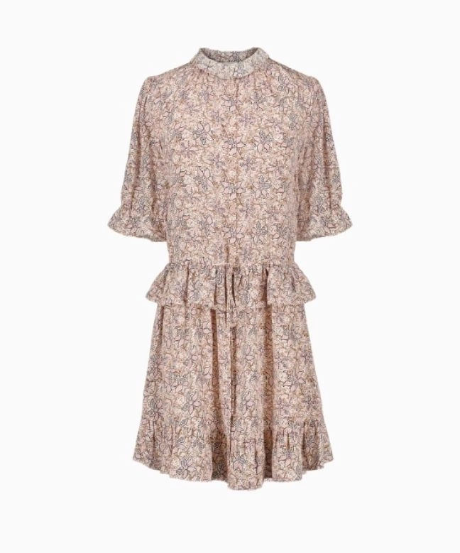Robe Vanessa Bruno, modèle Nymphe Écru. La robe Vanessa Bruno est confectionnĂ©e dans un imprimĂ© floral nude. Le col victorien ornĂ© de volants se ferme avec des boutons. Elle dispose d’une coupe droite avec de volants sur le bas de la robe et peut ĂŞtre cintrĂ©e grâce Ă un lien amovible Ă nouer Ă la taille. Cette robe Vanessa Bruno est disponible avec l’abonnement Une Robe Un Soir ou Ă la location Ă l’unitĂ©.