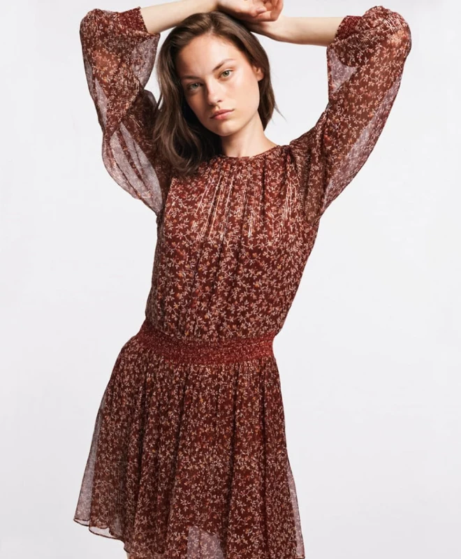 Robe Vanessa Bruno, modèle Svetlana. Cette jolie robe courte dispose de manches longues, resserrées au niveau des poignets et légèrement bouffantes. Elle est dotée d’un col rond et d’un plissé au niveau du haut du buste. Cintrée à la taille grâce à une ceinture intégrée et élastique, cette robe viendra mettre votre silhouette en valeur ! La jupe de la robe est fluide et légère. Cette robe Vanessa Bruno est disponible à la location par abonnement Une Robe Un Soir et à la location à l’unité.