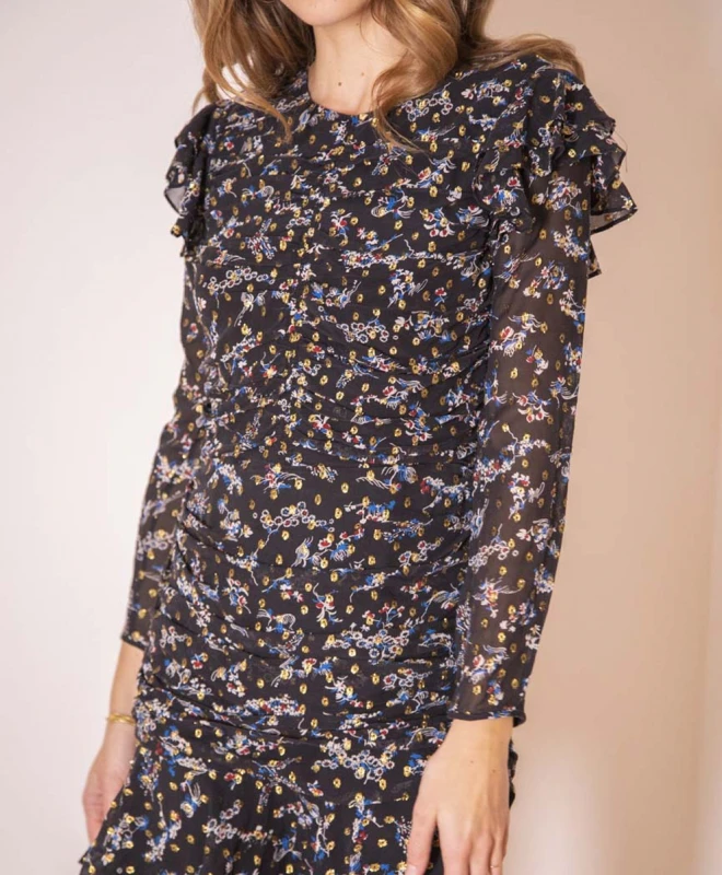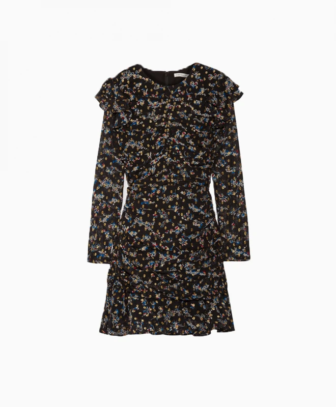 Robe VERONICA BEARD modèle Park Dress. Cette robe courte imprimé floral présente des volants féminins et des fronces flatteuses. Sa coupe romantique et féminine en fait une petite robe idéale à louer pour une cérémonie ou un cocktail. Ce modèle convient au format Petites. Elle est disponible à la location pour 4 ou 8 jours ou à l’abonnement