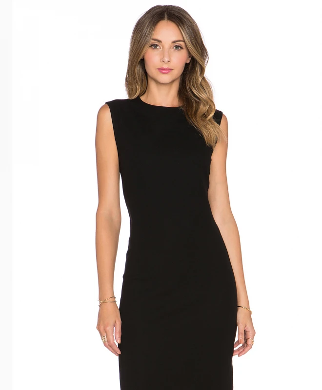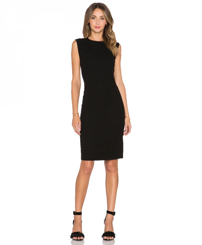 Robe VINCE modèle Black. Cette robe est signée VINCE. Confectionnée dans une matière agréable et confortable, elle est de couleur noire. Son col rond et sa coupe très ajustée, vous garantira une allure très féminine et sexy. Doté de manches courtes et d’une longueur midi, elle es idéale pour aller au travail.