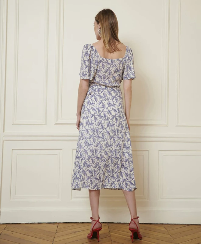Robe Zapa, modèle Riviera Bleu. Cette belle robe portefeuille dispose d’une longueur midi et d’une encolure dégagée. Elle est dotée de manches courtes et d’un imprimé fleuri. Cette robe taille normalement. Nous vous conseillons de sélectionner votre taille habituelle. Vous pouvez louer cette robe Zapa grâce à la box de vêtements Une Robe Un Soir ou à la location 4 jours.
