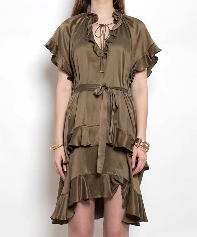 Robe ZIMMERMANN modèle Silk Ruffle. Cette robe 100% soie signée Zimmermann est aussi belle à regarder qu’agréable à porter alors pourquoi s’en priver ? Ses atouts ? Sa taille marquée, ses jolie manches volantées, son décolleté en V. Son petit plus ? Sa jupe plus longue sur l’arrière qui lui confère un petit côté sexy tout en délicatesse. Disponible à la location, elle saura vous accompagner lors de plus beaux évènements : mariages, anniversaires, galas… En termes d’accessoirisation, optez pour des couleurs chaudes : doré/turquoise avec notre sac GUCCI Marmont et nos boucles d’oreilles Gispsy Turquoise SYLVIA TOLEDANO pour un look printanier ; doré/rouge avec notre sac CHLOE Mini Drew Bijou et nos boucles d’oreilles Small Sabi de la marque SOKO pour un look plus automnal.
